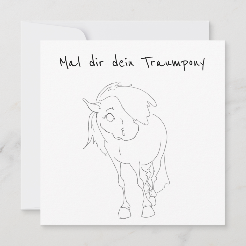 Nicht jeder hat Platz für ein echtes Pony in der Garage, aber die Liebe zu den flauschigen Vierbeinern kennt keine Grenzen! Diese kreative und humorvolle Karte ist perfekt für alle, die sich heimlich ein Pony wünschen – ob Kinder, Erwachsene oder hartgesottene Pferdefans. Mit der Malvorlage kann man sein ganz persönliches Traumpony gestalten: frech, bunt oder ganz klassisch. Eine witzige Geschenkidee, die garantiert für ein Schmunzeln sorgt und großen wie kleinen Pferdeliebhabern eine kreative Freude macht. Perfekt als Geburtstagskarte, Überraschung oder einfach, um jemandem eine kreative Auszeit zu schenken!