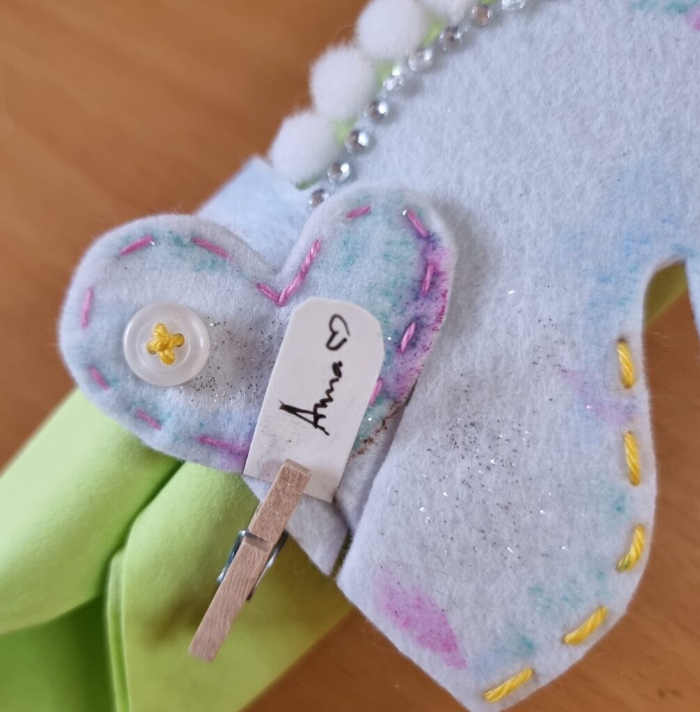 Meine Idee ist, dass alle Kinder (oder auch Erwachsene) am Tisch die leere Vorlage bekommen. Gemeinsam wird dann gebastelt und gestaltet. Wenn alles fertig ist und man sich an den Tisch setzt, hat jeder sein individuell gestaltetes Einhorn. Das macht nicht nur Spaß, sondern die Kinder haben anschließend auch ein schönes Erinnerungsstück, das sie mit nach Hause nehmen können – und eine lustige Beschäftigung während des Anlasses ist ebenfalls garantiert!