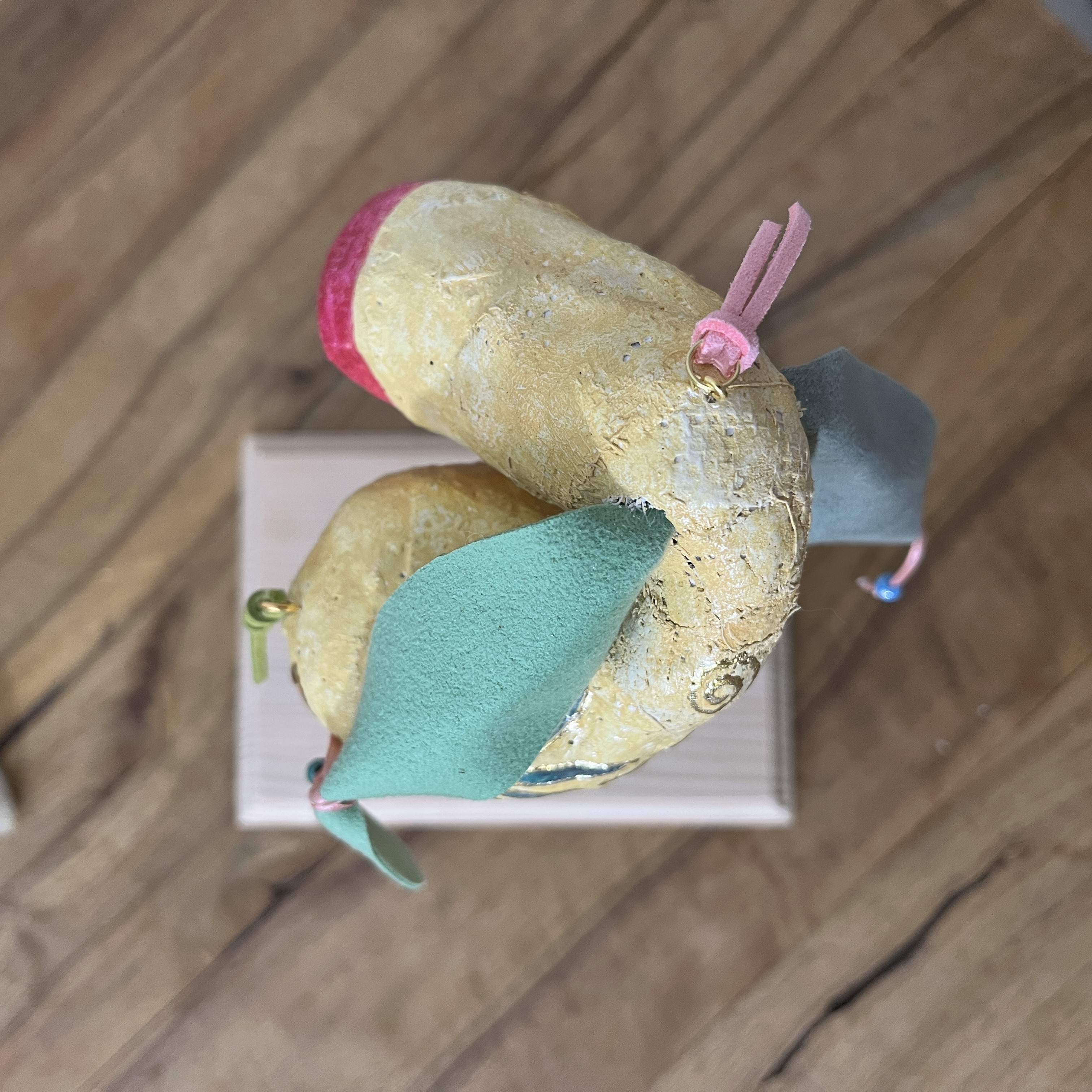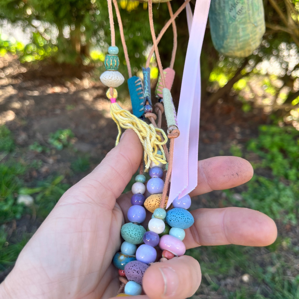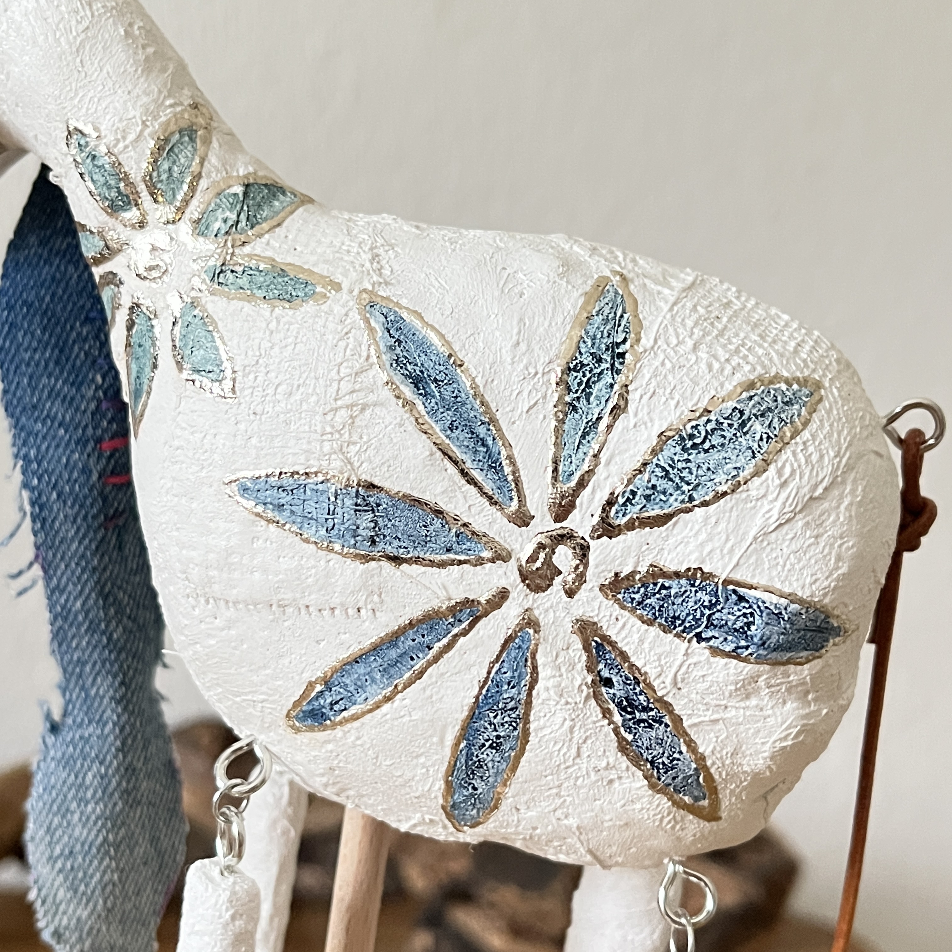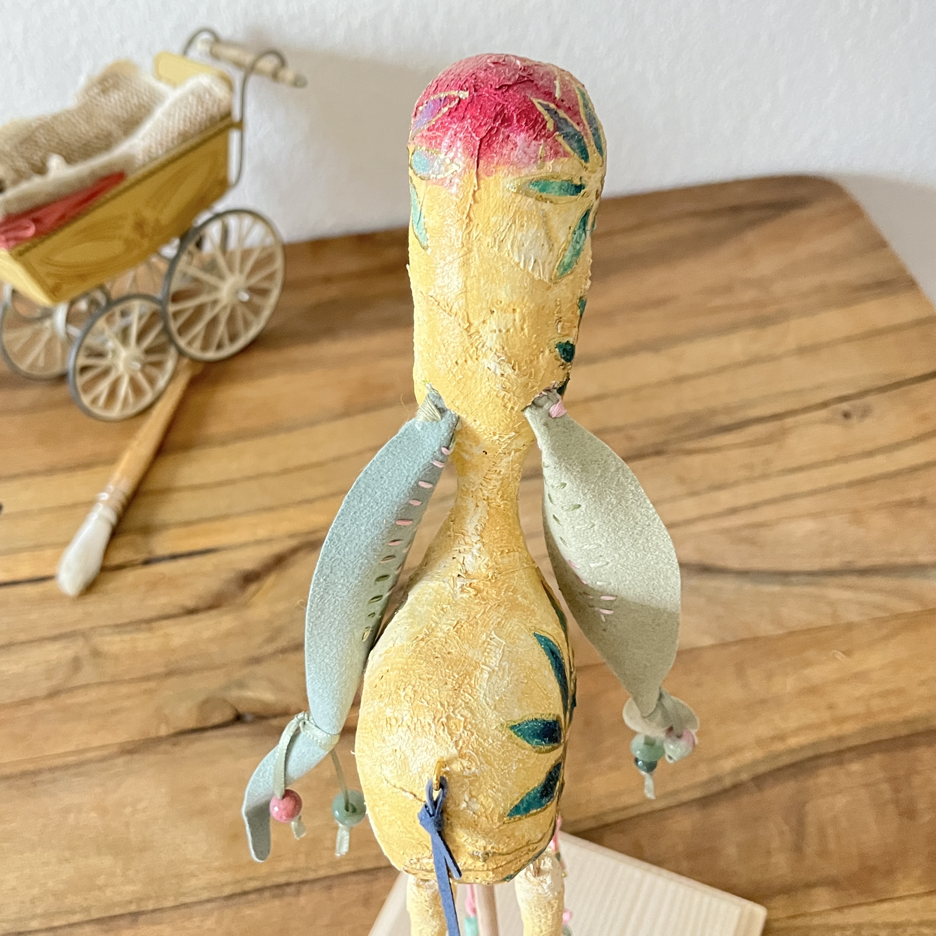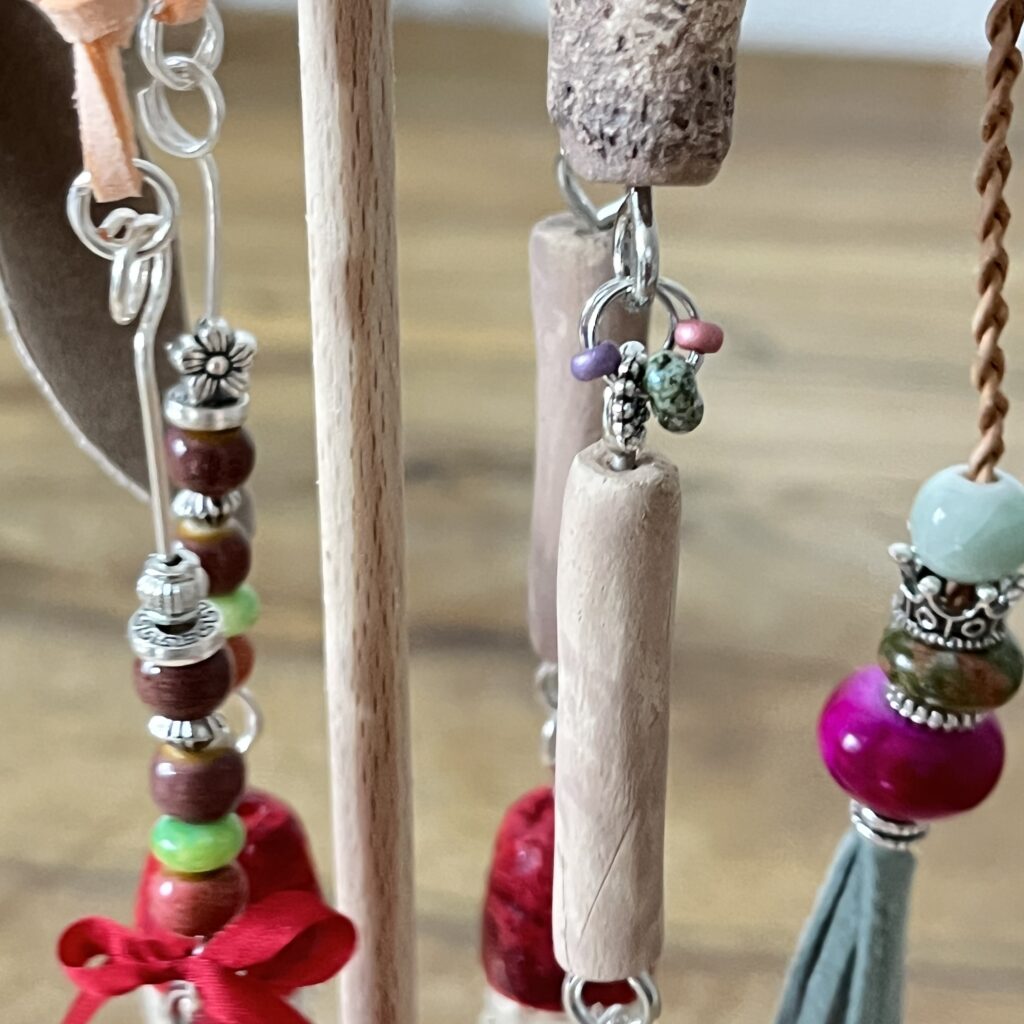 Jetzt kommen die Beine! Hier ist Platz für absolute Kreativität. Ich nutze Bänder, handgedrehte Baumwollkordeln, Lederschnüre und eine bunte Mischung aus Perlen: Keramik, Glas, Holz, Halbedelsteine oder Metall. Die oberen „Oberschenkel“ modelliere ich oft aus lufttrocknender Modelliermasse vor und überziehe sie ebenfalls mit Gips. In der Galerie unten finden Sie Inspirationen für verschiedene Varianten.