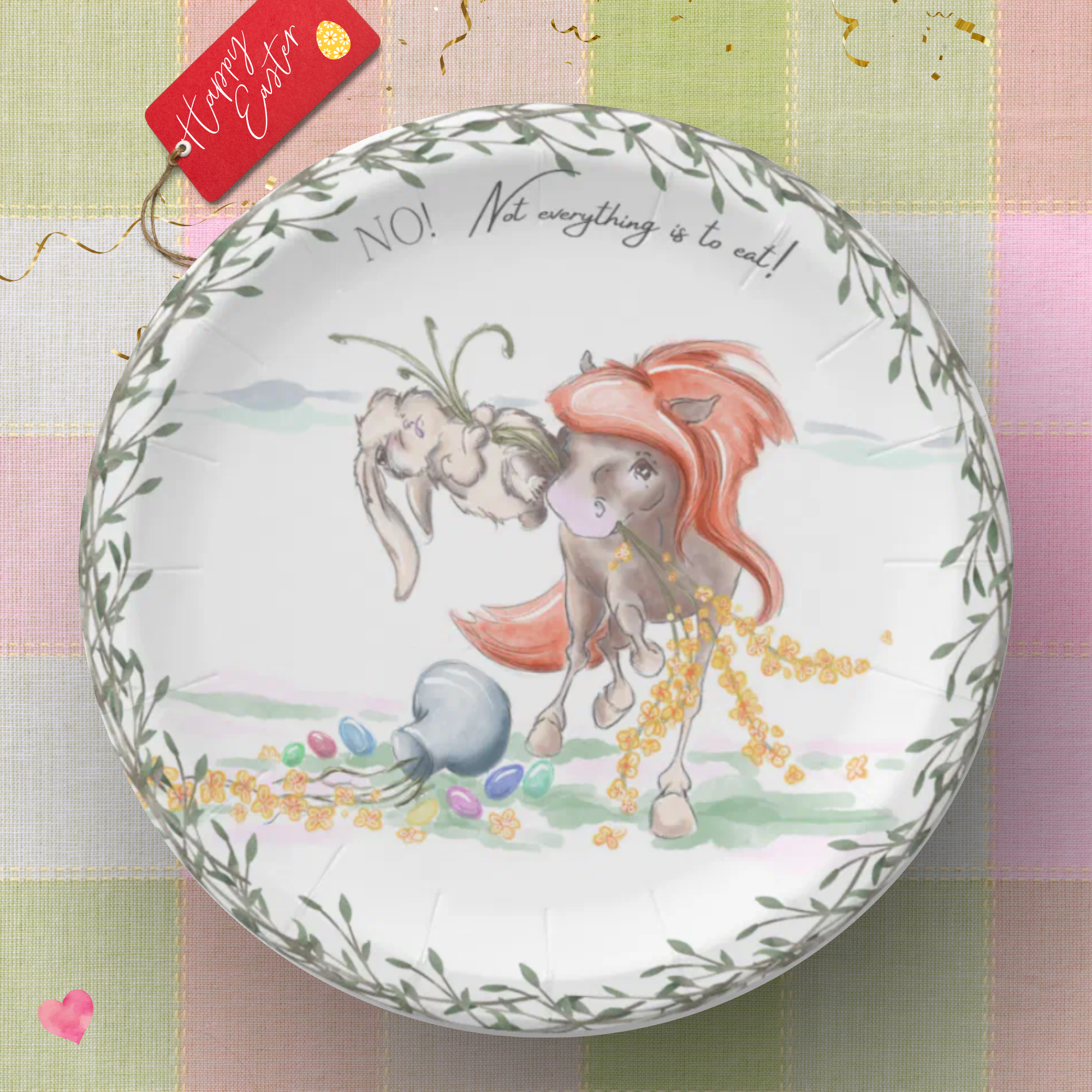 Osterparty mit Pferde-Stil: Pappgeschirr, Karten und Ballons mit Pferd-und-Hase-Motiv Ostern steht vor der Tür, und nicht jeder will an Ostern auf das Pferd verzichten und steigt auf den Hasen um. Also habe ich aus meiner Illustration, Produkten wie Pappgeschirr, Karten, Ballons und mehr gestaltet für die Tischdekoration. Dieses Jahr steht das süß-lustige Pferd-und-Hase-Motiv im Mittelpunkt …